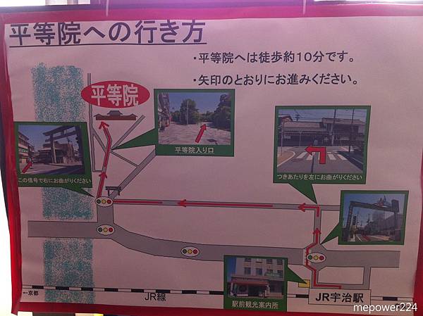 到了車站後有介紹要怎麼去平等院的方向